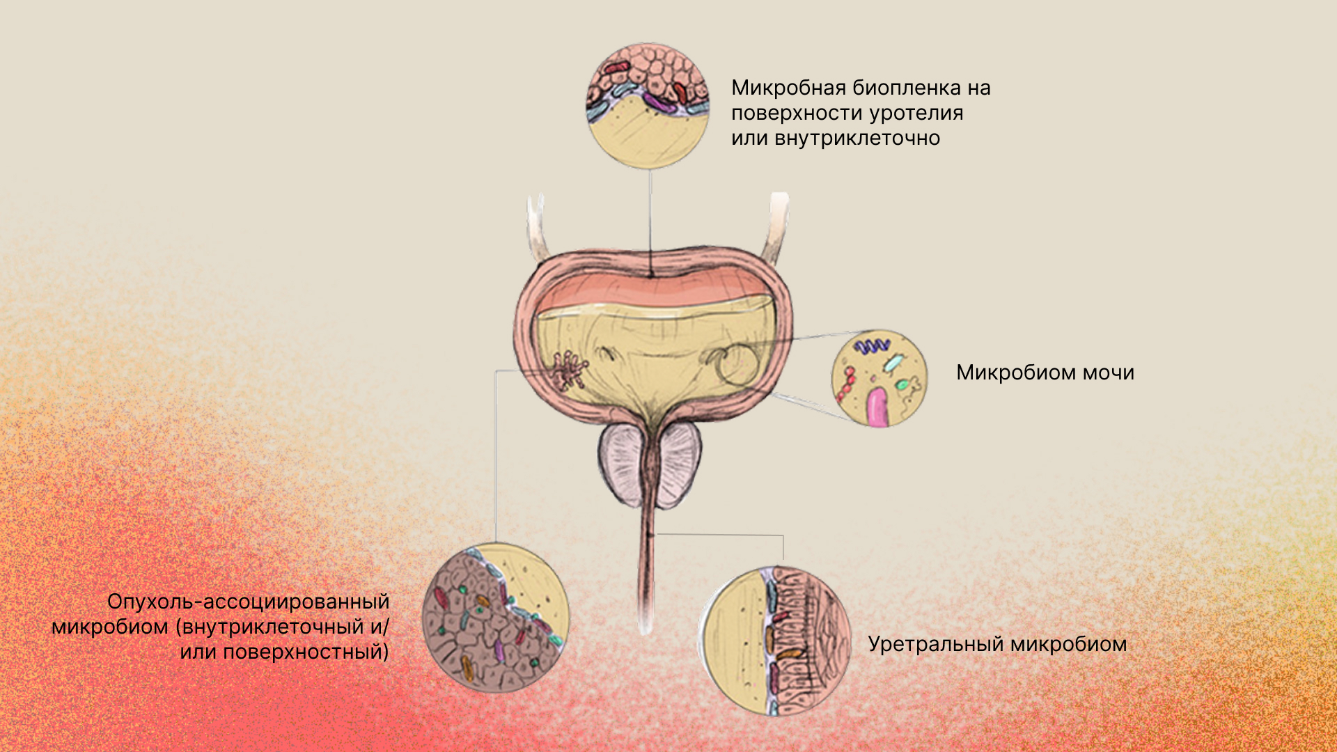 Мочевой микробиом – совокупность микроорганизмов, обитающих в мочевых путях, теперь активно изучается в контексте различных заболеваний. Появляются данные, что изменение состава мочевой микрофлоры (дисбиоз) может влиять на развитие и течение рака мочевого пузыря [7, 8].